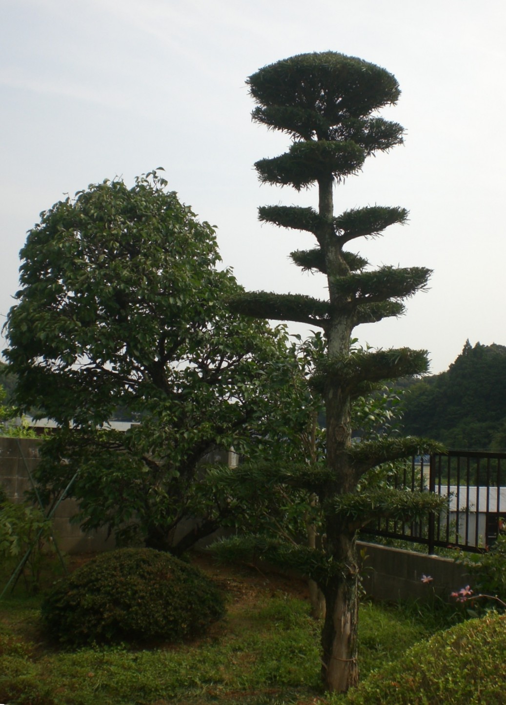 I would like to introduce the details about pruning of our garden trees. I think the trees in Japanese good gardens which had been built since 1500s were the basic models of our bonsai. We would like to keep the styles of trees in the garden as neat as possible. And we have to cut them lest they should give the serious damage to everything when we have a very big typhoon. Besides I have to prune some of them in the early summer. If I don't do so, I have to give them a lot of water after the rainy season.