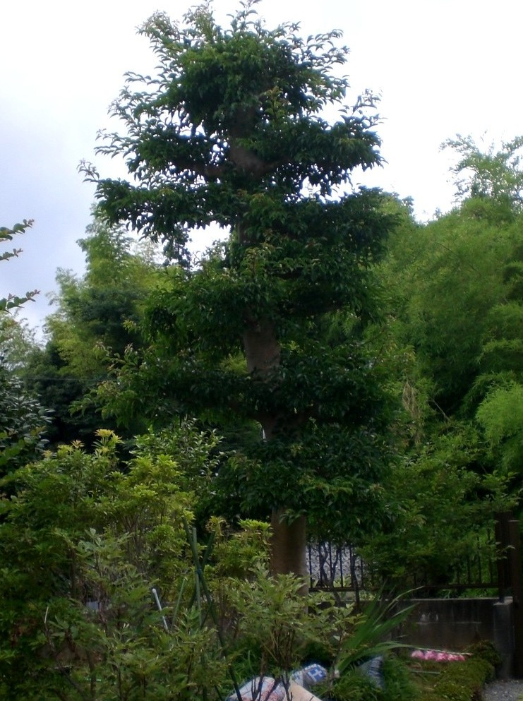 As this tree was very tall, it was very dangerous for me to prune its top and long branches. Therefore I cut the trunk and branches short several years ago. Now it is a little more than 4 metres tall.