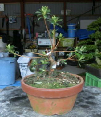 But each association and society in Japan have their classification of satsuki bonsai. A lot of them have three classifications of daihin, chuhin and shohin. Therefore, generally speaking, the tree whose height is within 20 cm or much lower, is often called mame (mini) bonsai or gokushohin. And since this time I decided to call the material the sapling if it is wthin 3 years old, and the young tree if it is 4 years old and over.