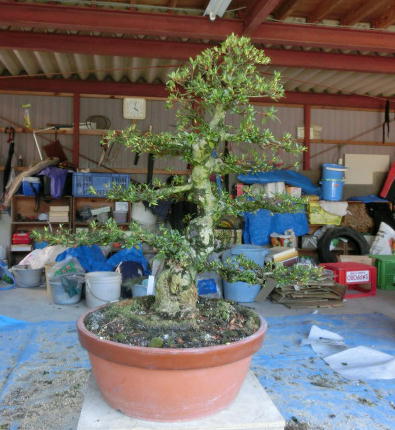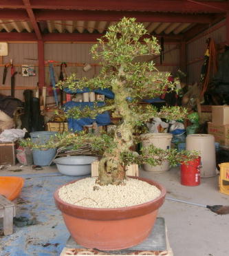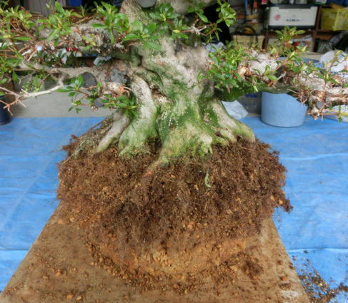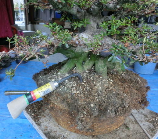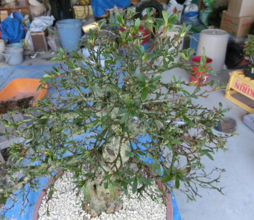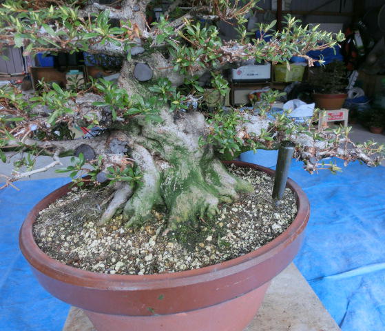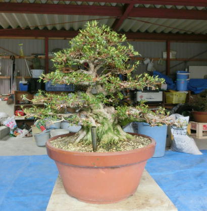 Now that I am 73 years old, I think that I have to complete several satsuki bonsai as my final working, and that I have to give up practising any kind of drastic ideas because I think I have only several years to work in the garden in the rest of my life. Therefore this is my final renewal of my web site about repotting of large satsuki trees because I will be very tired from repotting heavy satsuki trees, taking a lot of photos.