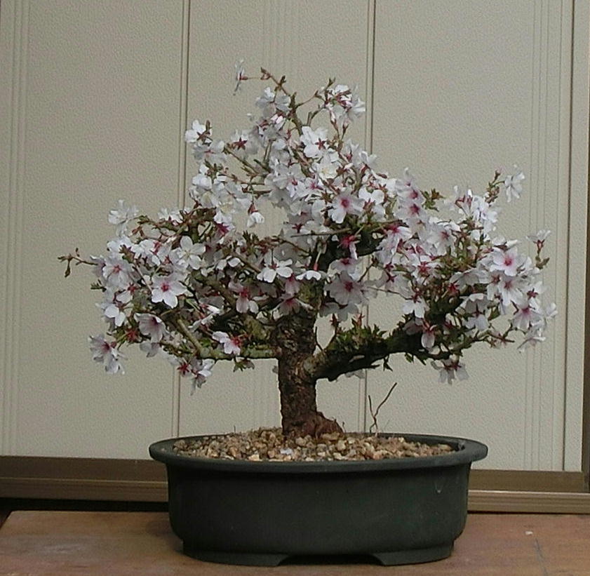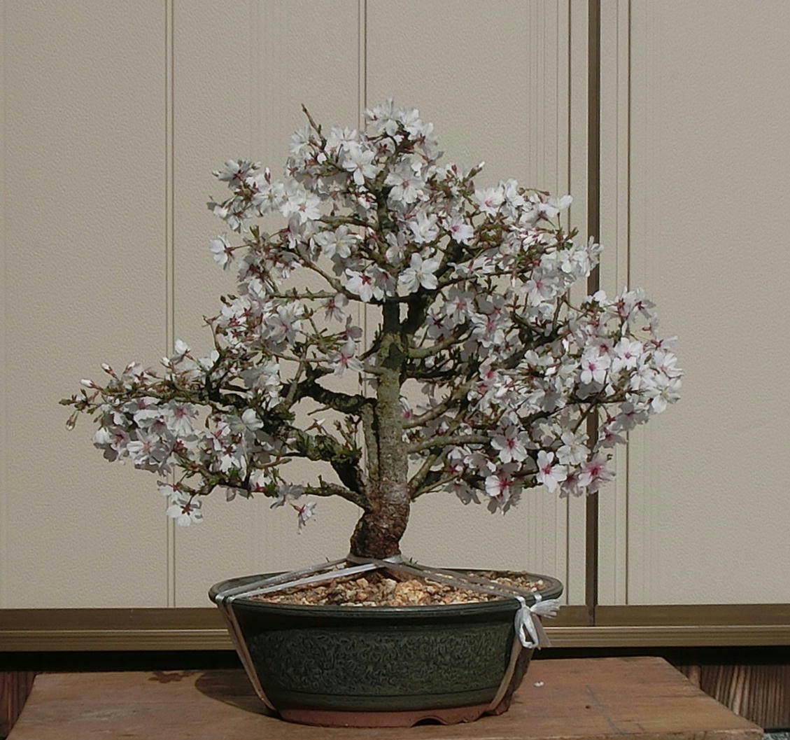 And besides, I am very happy to see the flowers of my cherry tree bonsai every year. Though these trees are called “Issai zakura” (Small-sized cherry tree) generally, the left and middle trees have the pale pink flowers, and the right tree has the deep pink flowers. These photos were taken on April 3rd 2013.