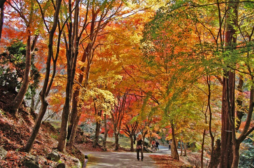 We are much charmed with the beautiful autumnal tints if the leaves were pure red or yellow. Especially a lot of Japanese people like to go seeing the beautiful sceneries in late autumn when a lot of trees have turned the colours of leaves purely red or yellow like seeing a lot of cherry blossom in spring. Every year we are looking forward to listening to the information about their fronts approaching to our district from the weather forecast. The former is called the autumnal tint front which comes down from Hokkaido to Kyushu in autumn. And the latter is called the cherry-blossom front which comes up from Kyushu to Hokkaido in spring. These are the two big events in Japan which make the people go seeing their beautiful places every year.