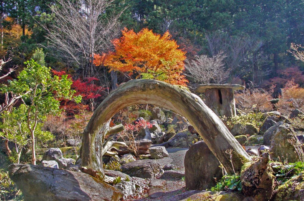 Next we went to Haze Botanical Garden where 50,000 stones are put on each place in the garden. Though it has not been kept in the very good condition, a lot of plants and stones entertain us whenever we visit it except January and February when it is closed. Of course it already was past the best time to see it and a half of Japanese maple trees did not have any leaves, but other half of them still had a lot of beautiful leaves.