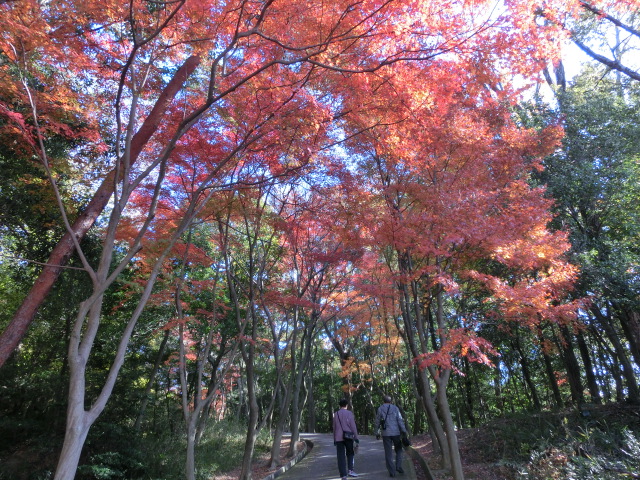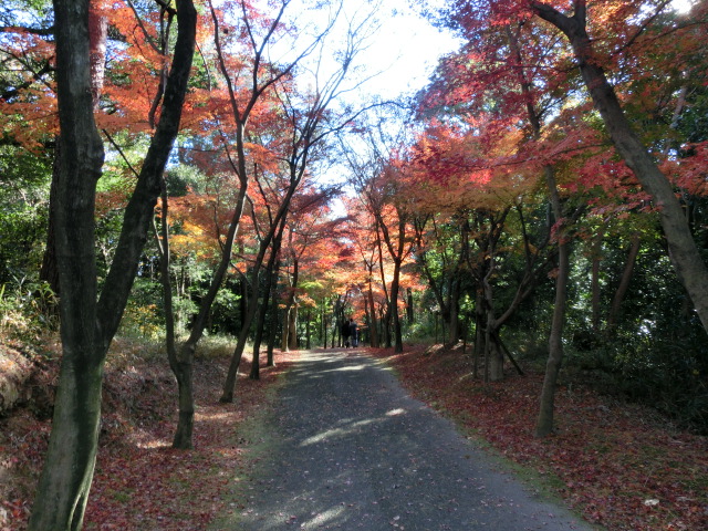 Since the autumnal tint of Japanese maple trees in Okazaki East Park was past the best time to see, the colour of red a little bit faded away. But since the autumnal tint of Japanese maple trees there is famous, they were very beautiful though we could see a lot of their fallen leaves.