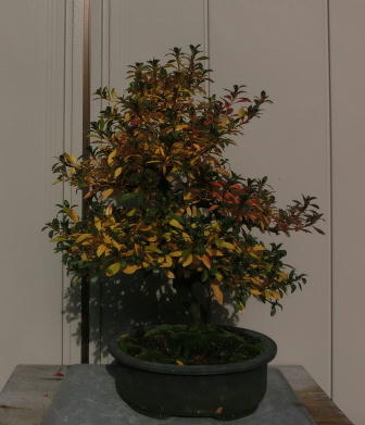 I have a lot of saplings and young trees of satsuki now. And more than a half of them had the mechanism of autumnal tint and their coloured leaves fell down by the middle of January. But all five trees of Jukokan did not have the autumnal tint last autumn, that is, their summer leaves did not change the colour.