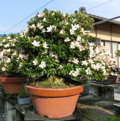 Now, I think I have to be in such a hurry to complete a lot of satsuki trees as bonsai because I am 75 years old now. Therefore when I introduce my main satsuki trees on this web site, I may be able to force myself to do so. Since my youngest brother (66 years old) is on his death bed from some cancers now, I think it may be the time when I have to think of my trees after my death. Though I would like to continue to grow satsuki trees as long as I live, since we have a finite lifespan, we have to obey the providence. If you are pleased to read this web site and think it is useful, I am very happy.