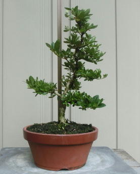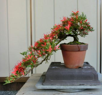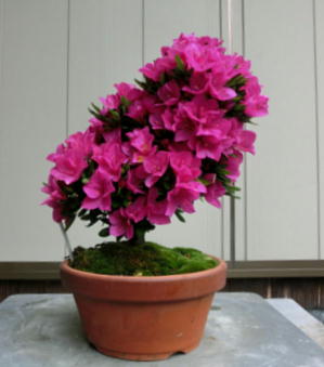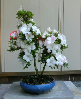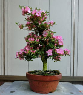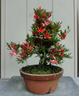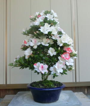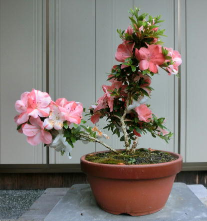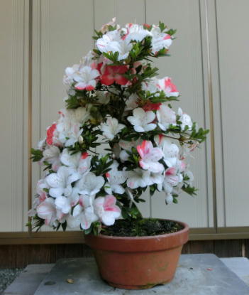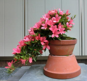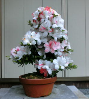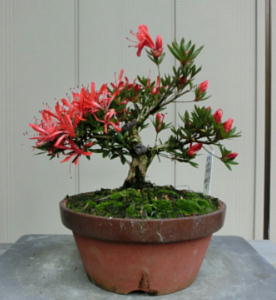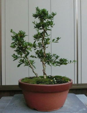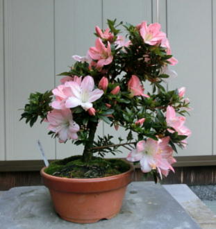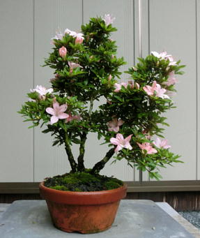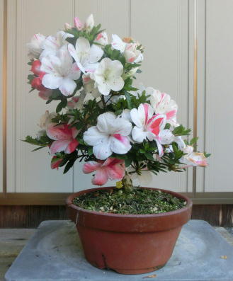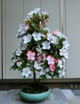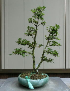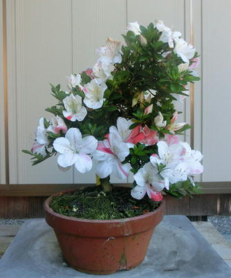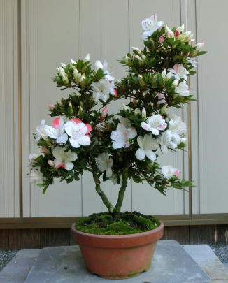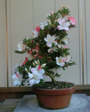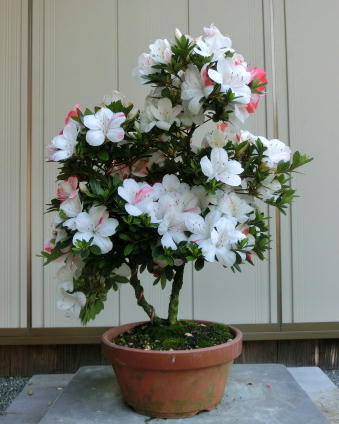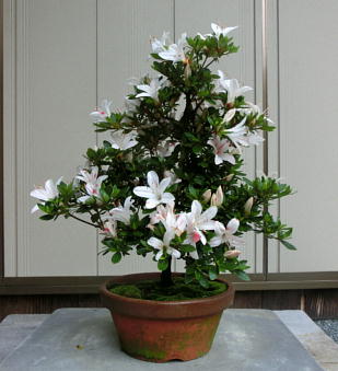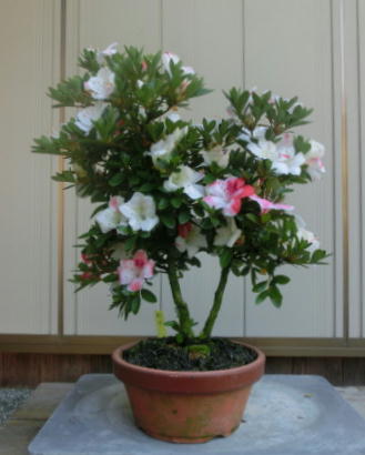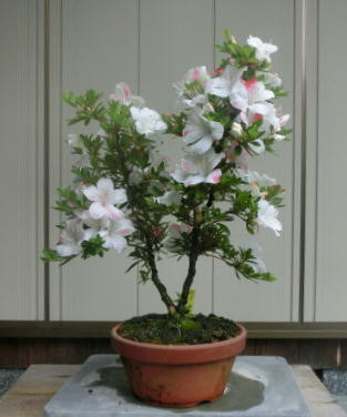 Now I have more than 38 small satsuki trees in the bonsai and terracotta pots which are more than 17 years old, and since they remained unsold at the flower show when I was the president of Ise Satsuki Society (2001 – 2004), I have grown them since then. I had to make a lot of saplings and young trees to sell them there at that time.
