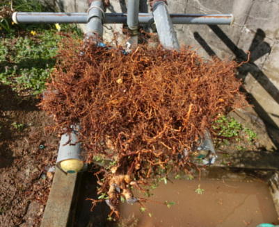 As I wrote in the previous web site, now that I am 76 years old, I think that I will have to give up growing all satsuki trees in the pots and the nursery in 10 years and would like to make the trees in the nursery have the good shapes as soon as possible. And I planned to dig out the very large Nikko S from the main nursery and the very large Sangosai and Yakushima tsutsuji from the second nursery, and plant them in very large wooden pots after washing the roots. And I decided to dig out all trees from the second nursery to make it into the field of vegetables lest I and my wife often should water them in summer.
