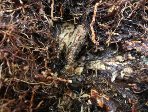 I bought this Kozan B for 33,000 yen in 1988. The height was 50 cm and the trunk girth was 19 cm. Therefore when I repotted it in1993 I cut the trunk short. The height was 32 cm and the trunk girth 22 cm. I repotted it in a large terracotta pot in 2000, 2007, 2011 and 2015. Since I thought this pot was small, I repotted it in the very large wooden pot on March 21st, 2019. The left photo is the whole figure before repotting. The second one is the front side of the roots after washing. The third one is the back side. Judging from these photos of the roots, this tree does not seem to have a lot of rotten roots. And it has a lot of good roots on the right one.