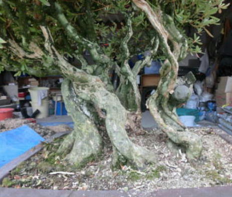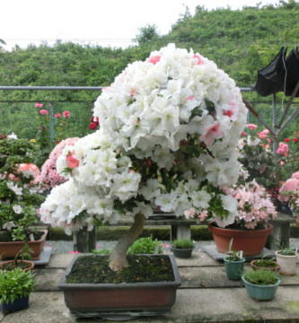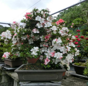 And it is true that I had so many trees that I wanted to cut the large branches and do other things to get a lot of results of my working about satsuki trees at the age of 40s and 50s. And now I have a lot of trees which will die in the near future because about two-thirds of them have large scars and the rest was put on the tables at the flower show. These were my experiences, that is, I have a lot of success and failure examples. Therefore I can answer a lot of questions about satsuki trees.