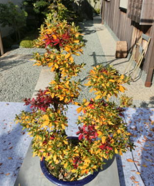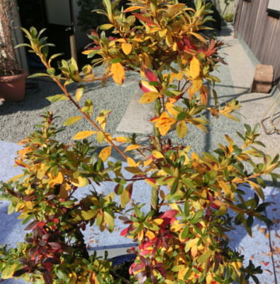 I would like to show you the beautiful coloured leaves of satsuki trees on the photos. Though I hadn’t seen them for a long time, I could saw them in the middle of December in 2019. I think it is because I didn’t give any fertilisers to all satsuki trees in the garden in October though I had given them to them at the start of September and it had begun to be cold suddenly at the start of December though it continued to be warm in the daytime to the middle of it. I was very happy to have had these good chances.
