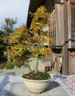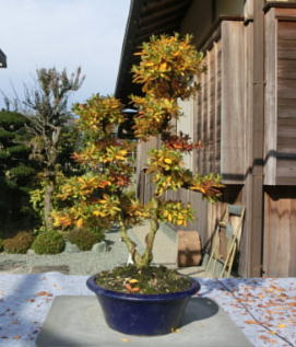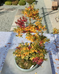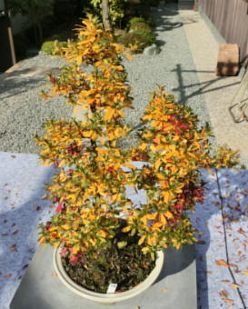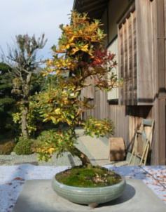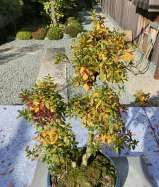Therefore I think it is very difficult that we make our satsuki trees have very good coloured leaves in autumn every year. But it is the same about all trees in pots if they are deciduous trees. Especially it is more difficult to make Japanese maples have a lot of very beautiful coloured leaves in autumn. But the view of the coloured leaves of plants in the pots in autumn always gives us a lot of pleasure.