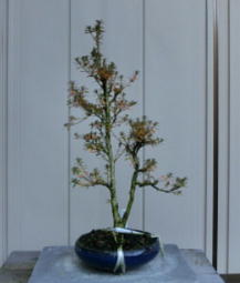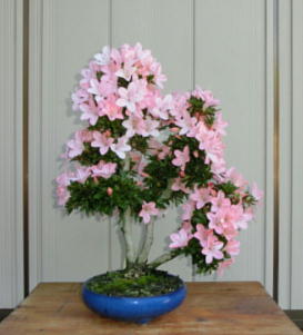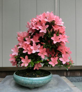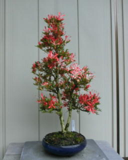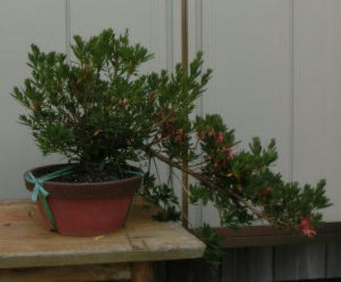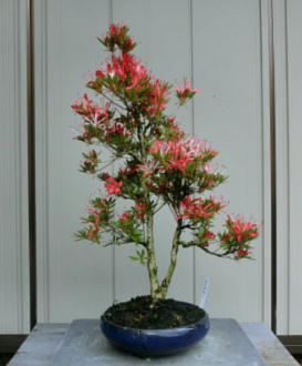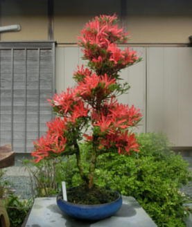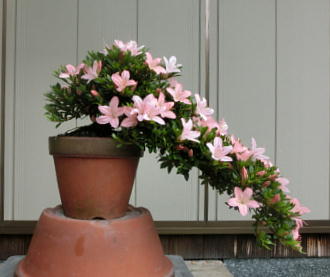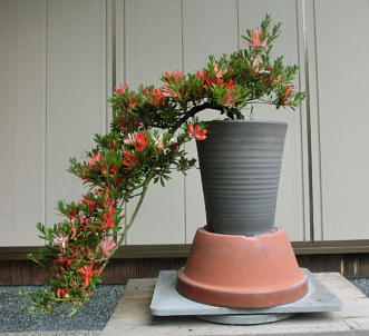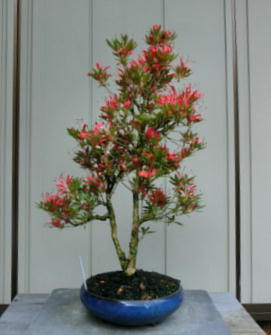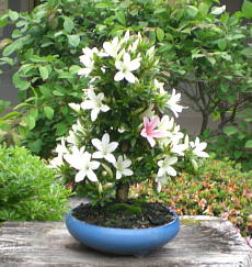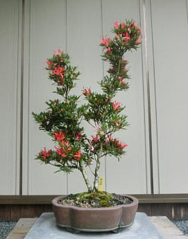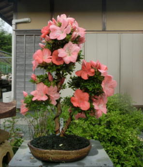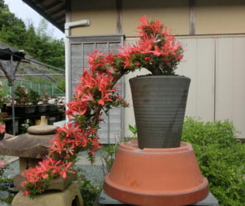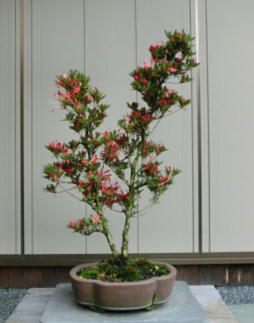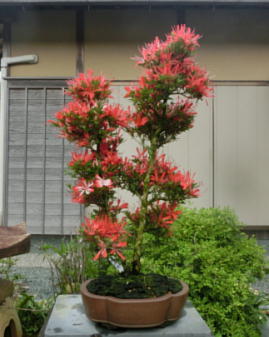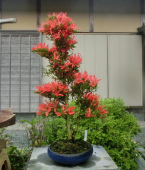 The left photo is the front side of this tree. Judging from the flowers of the photo which was taken in June 2012, you may recognise that it is Nikko. Though any red flowers are not seen, you can distinguish the difference of combination colours. Perhaps it was 11 years old because it already had been planted in the bonsai pot.