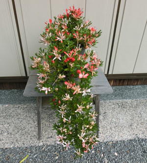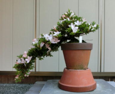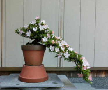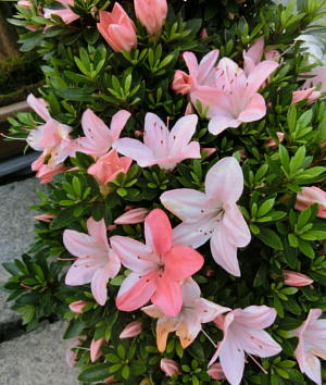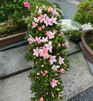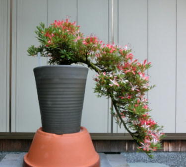 But if we know the natures of the trees which have multicoloured flowers, we often can get the good results every year. For example, if you have a young tree of Nikko (or Shin-nikko) which has white and red flowers, you have to think how may shoots of red and white flowers you keep when you prune it after blooming. A good colour-arrangement of flowers depends on your skill.