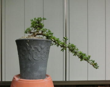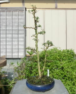 The left photo is the front side of this tree and the second one is the back side. Since the bonsai pot looks a little bit larger, the whole figure isn’t good. But the colour-arrangement of flowers isn’t bad. These photos were taken on May 25th, 2016. The third one is the front side and the right one is the back side. The colour-arrangement of flowers is better than that in 2016. These photos were taken July 2nd, 2017
