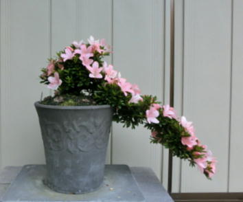 The left photo is Togenkyo, which was taken on July 4th, 2014. After pruning I planted it in a very deep bonsai pot. The second one is the whole figure after trimming on December 4th. The third one is the front side of this tree and the right one is the back side. The colour-arrangement of flowers is good. These two photos were taken on May 26th, 2017.