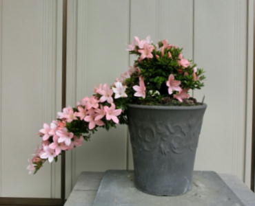 The left photo is the front side of this tree and the second one is the back side. The colour-arrangement of flowers is good on these photos which were taken on May 26th, 2016. I pruned and repotted it after blooming. The third one is the whole figure of the front side and the right one is the back side. Though it doesn’t have a very good style, it looks beautiful.