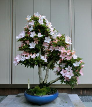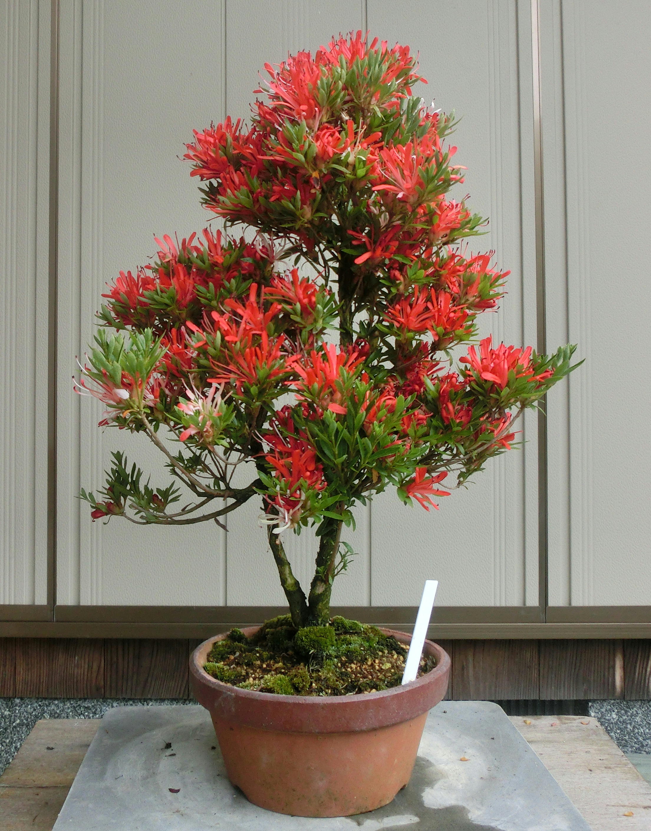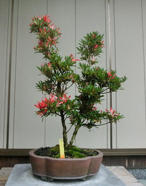 Though almost all old satsuki trees don’t have the large change of multicoloured patterns of flowers, a lot of young ones have it because the genes of colours are not fixed in them. But it is a fact that some of them have only very minor changes. Therefore satsuki enthusiasts often are very glad or sad to see the multicoloured patterns of flowers in their young trees which have multicoloured flowers after they bought them. At the same time this point is very interesting to them.