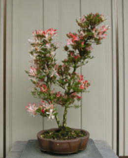 If our young satsuki trees had multicoloured flowers, the colour-arrangements of flowers make us feel glad and sad every year. Especially it is because it is thought that the genes of each colour in the young trees are not fixed strongly. Sometimes satsuki trees have a bud sport. Even if a satsuki tree continued to have monochromatic flowers for a long time, suddenly it may have a shoot which has flowers of other colour, or which has other shapes of flowers or leaves. Therefore we cannot hope that our satsuki trees will have the same colour-arrangement of flowers every year.