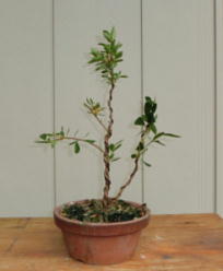 Since this Kogetsu C has good flowers as a sapling to make it into a bonsai on the left photo which I took on 31st May 2013, I styled it into a two-trunked tree after blooming. Though it doesn’t have a lot of flowers on the second photo which was taken on 22nd May 2016, the colour arrangement of flowers is good. After blooming I repotted it in a bonsai pot, but the style as a two-trunked tree is not good on the third photo because I didn’t restyle the main trunk with the thick wire. Though it has a lot of white flowers, it has only one red flower and a fukurin on the right photo which was taken on 29th May 2017. Therefore, the colour arrangement of flowers isn’t very good, but I can hope that it will be a good bonsai which will have a good colour-arrangement of flowers in 6 years. I wired the main trunk after blooming.