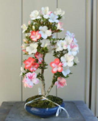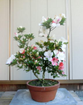 I introduced 8 young trees of Kogetsu in my web site from 2013 to 2019. It is because I continue to have the strong interest in the changes of colour arrangement of their flowers and the process of their growing to bonsai that I introduced them 6 times for 6 years and do so in 2020, too.