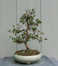 But when young Kogetsu trees were completed as bonsai, since they are asked to have the good colour arrangement of flowers, we had better make them have some red flowers and some fukurin. And their numbers depend on your preference. But it is a fact that, once a young Kogetsu has a lot of red flowers and fukurin, nobody will make it have a lot of white flowers.