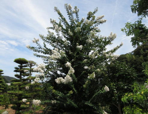 A lot of crape myrtle trees continue to have flowers for more than two months. My white crape myrtle tree always shows me very beautiful flowers through August though it begins to have flowers in the middle of July. Though I never give it any fertilisers, since it has spread the roots to the rose garden to which I always give a lot of fertilisers, the shoots are so long that some of them cannot endure the weights of flowers.