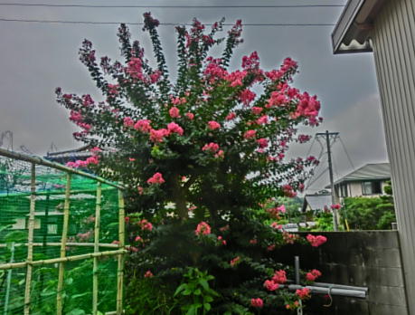 And this red crape myrtle tree begins to have flowers at the end of June. It was called “Hyakujikko” in Japan which means that it continues to has red flowers for one hundred days. These flowers are beautiful in July and August. Since red crape myrtle trees are often seen in the temples, some of Japanese don’t like to plant it in the garden. Since they continue to have a lot of flowers for a long time when it is very hot in summer, the whole figures with a lot of flowers give us the energy to live and the power to endure the extreme heat through the mid-summer, for they are so strong that they seldom die in summer.