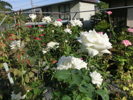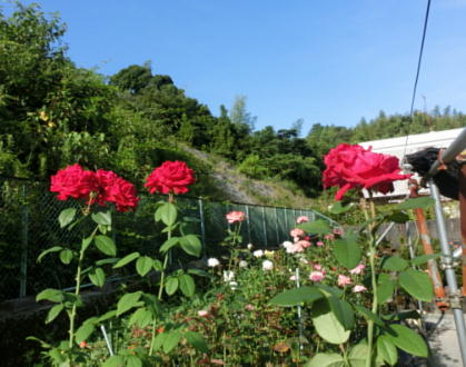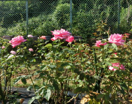 We have about 50 rose trees in the rose garden because we gave some rose trees to one of our friends and sold more than 50 trees last year, Though I and my wife had decided to sell all trees at first, she insisted that she would like to keep a half of them when she saw the beautiful flowers last autumn. And since we always make them have flowers from May to January, we can see the flowers in summer. But they are smaller than those in spring and autumn. And their colours aren’t pure. But we can enjoy them.