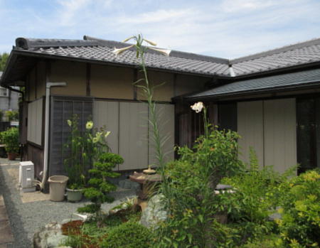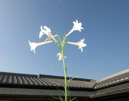 We can see a lot of this kind of lily in our garden and around the house. Thy are so strong that I often have to pull out a lot of sprouts in the pots and garden. But since the flowers are beautiful in summer, I didn’t pull out more than10 sprouts. You can see a huge lily which has 6 flowers in the courtyard on the photos. Though these flowers are beautiful, it is so huge that I think it doesn’t match the courtyard.