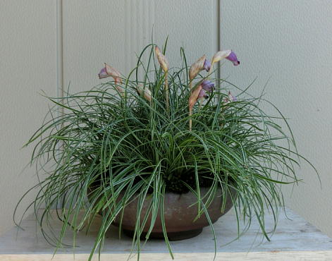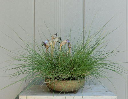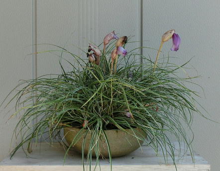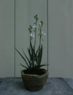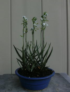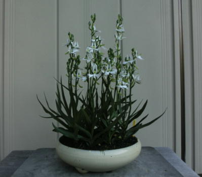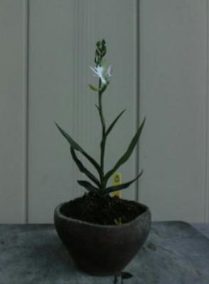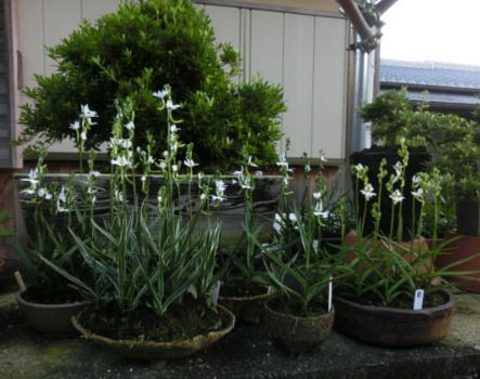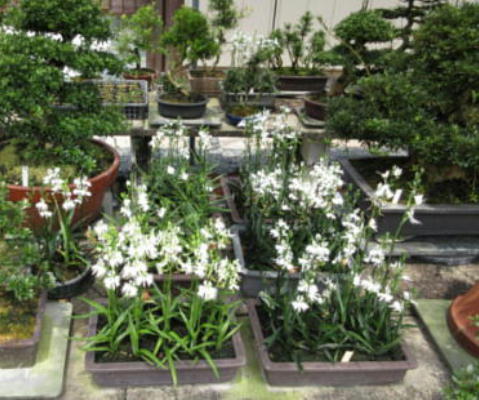 I always plant a lot of bulbs in large pots to secure a lot of bulbs for next year. When I planted 10 bulbs or more in a pot, if the height of them is same, these flowers look like a clump. Therefore, I always plant some large bulbs, some middle ones and some small ones when I use a middle bonsai pot to plant a considerable number of bulbs. But when I plant several bulbs in a terracotta pot, I use the same size of them. Though I planted them in about 40 pots last March, I sold a terracotta pot where seven fringed orchids were planted for 1,500 yen and brought 4 pots to one of our friends to put two of them in the rooms and two in the pearl shop.