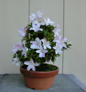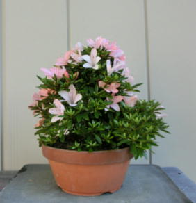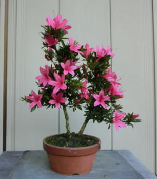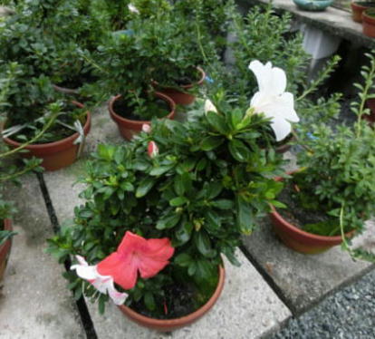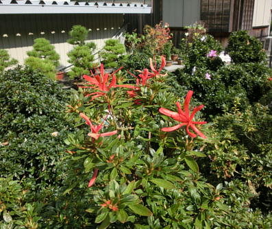 The flowers of satsuki trees in autumn delight our eyes. But we mustn’t make them have fruits lest they should be weak. The left photo is Yama-no-hikari. The middle one is Fujizakura. And the right one is Kinsai.