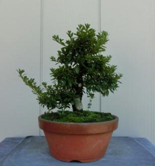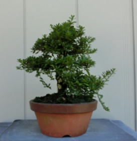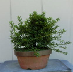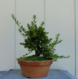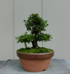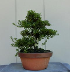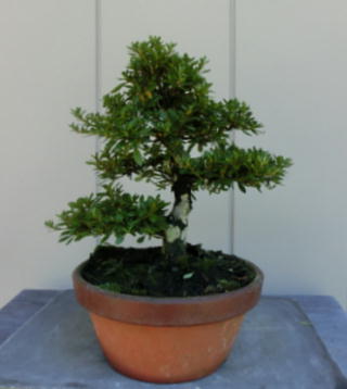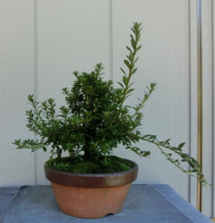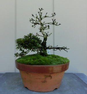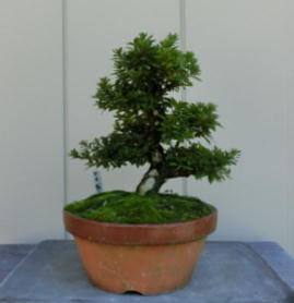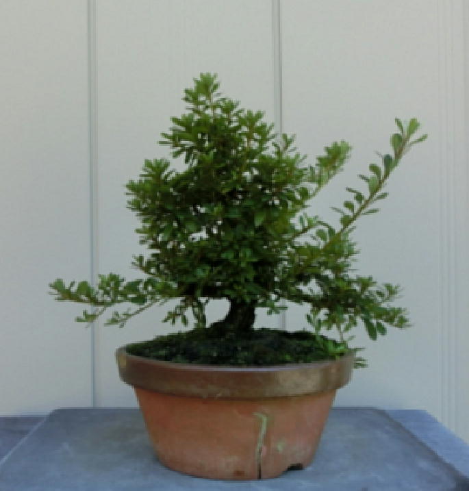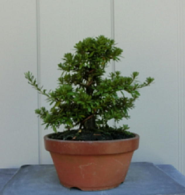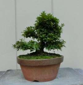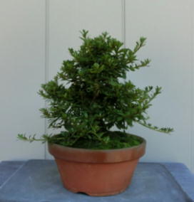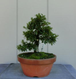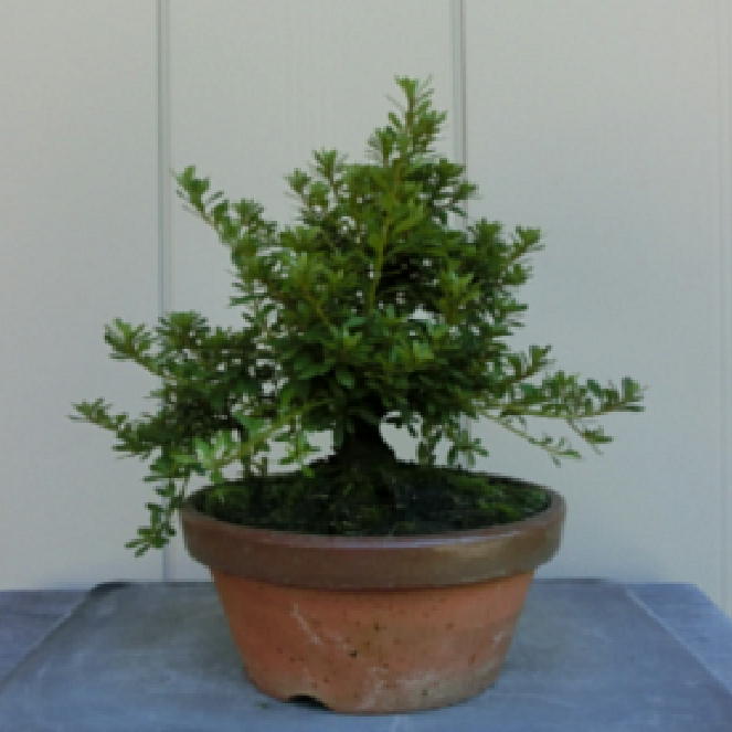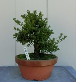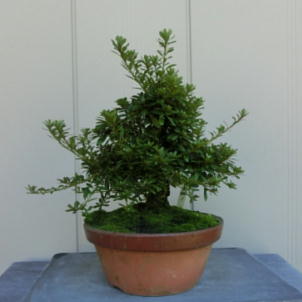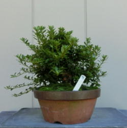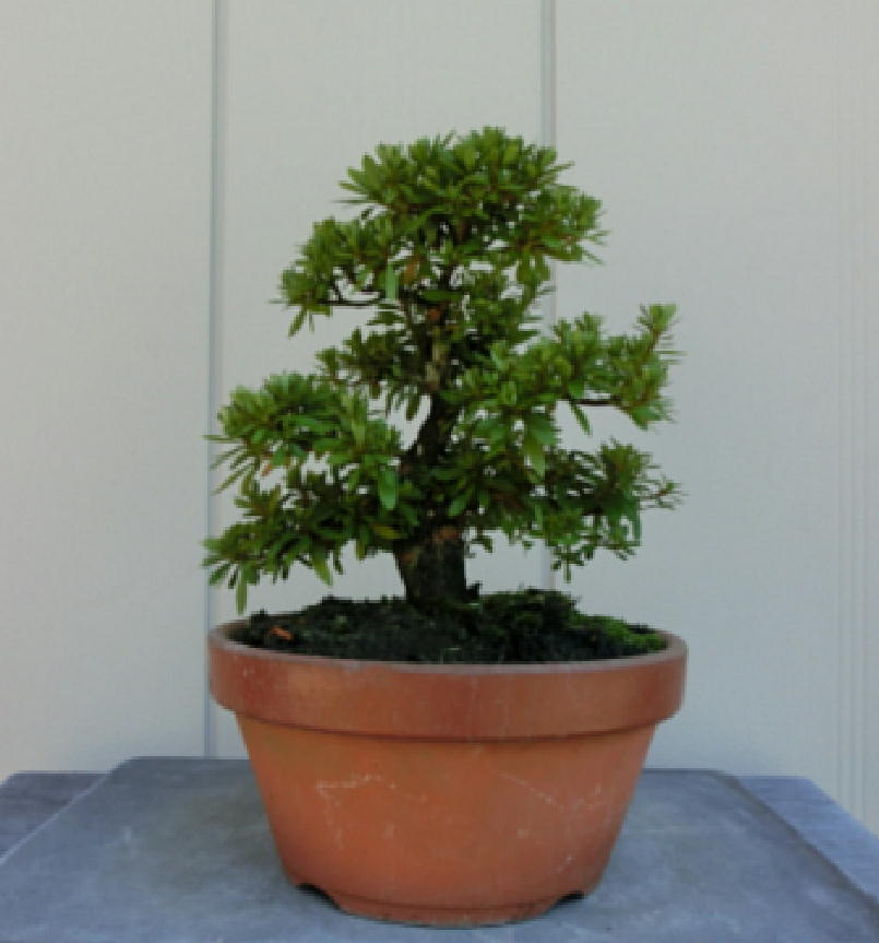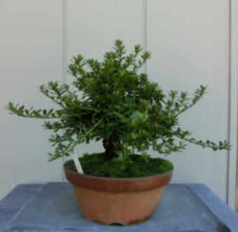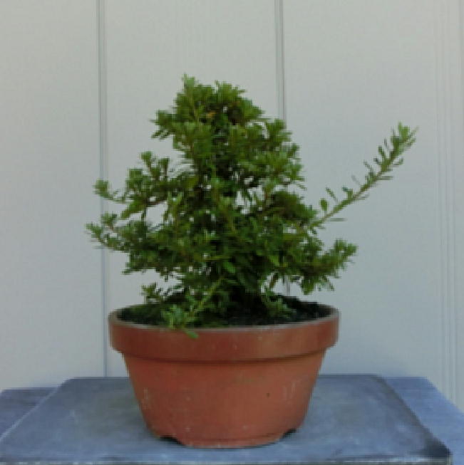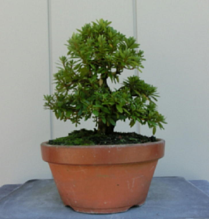 This Nikko 12 is not the brother of the above trees of Nikko and has the formal leaves of this variety. Since it had been a little bit weak for a long time, I haven’t had any photos of the flowers. But since it had several long shoots and looked healthy though the leaves aren’t dark green, I trimmed it. After trimming it has a good taper of the trunk and the whole figure is good because the trunk has some windings. If it will have a good nebari when I will repot it next year, I would like to plant it in a bonsai pot. But I am afraid how it will have flowers.