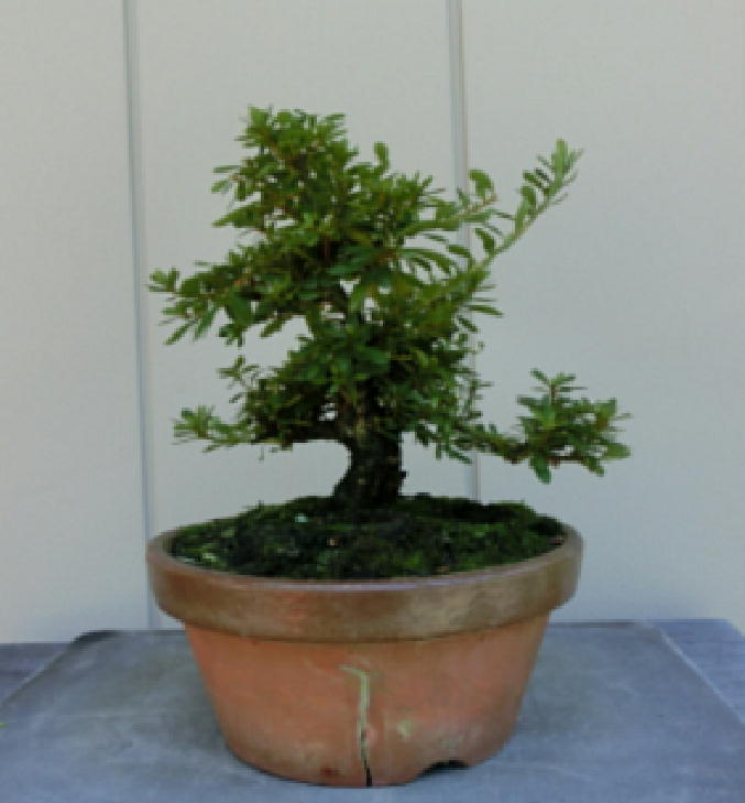 Nikko 10 is the brother of the above trees of Nikko. Therefore, though it has small leaves, the colour-arrangement of flowers isn’t very good. It is so strong that it had a lot of very long shoots before trimming. After trimming, since the trunk has some windings and the good taper of trunk the style is very good. It will be completed as a bonsai in 5 years. I only hope it will have good flowers.