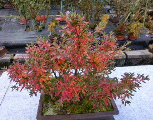 But when I was at the age of 50s, I made several good satsuki bonsai which I had grown from the cuttings die because I lent them to them and put them on the tables at the flower show of Ise satsuki society. The reason of their death was lacking of water. Though I gave them a lot of water every day through a year, they didn’t do so. But though I knew these conditions, since I had the reasons why I had to lend them to them and besides they gave me a lot of money, I continued to lend them to them. But I didn’t put the very expensive satsuki bonsai on the tables at our flower show, for which I had paid a lot of money.