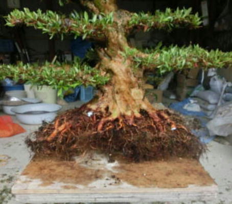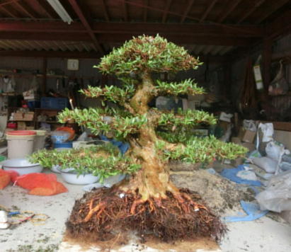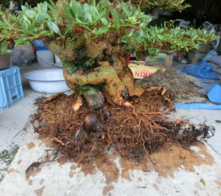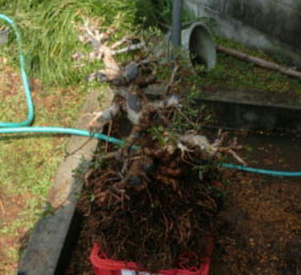 When I dug out this tree from the nursery on 26th March 2014 after pruning drastically, the style looks very good on the third photo because the taper of the trunk is very good though the trunk doesn’t have very good windings. When I washed the roots after removing the soil, the nebari is very perfect on the right photo.