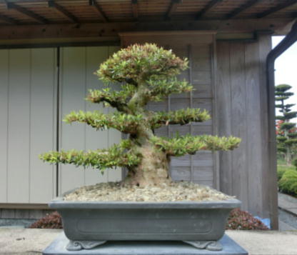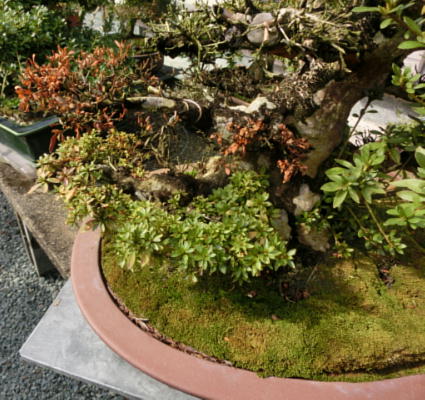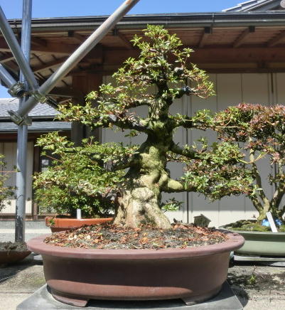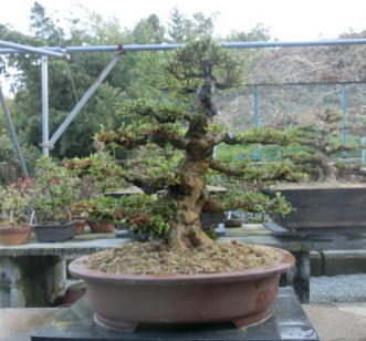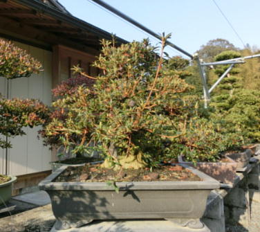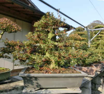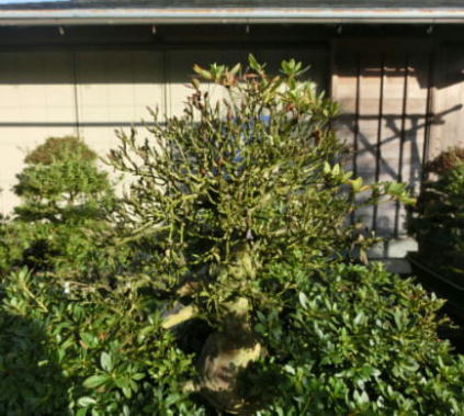 A few good satsuki bonsai continued to die because I put them on the table at the flower show in the large room whose air was cooled down with air-conditioners. Especially, satsuki trees don’t like the cool winds of air-conditioners. Since I was the president of the society for several years, I continued to put several good satsuki bonsai on the tables at the flower show and couldn’t give a lot of water only to my trees. After I had retired from Kogakkan University at the age of 64, I could take good care of plants in the pots. But sometimes, the very expensive satsuki trees died, which I had bought as araki in Kanuma.