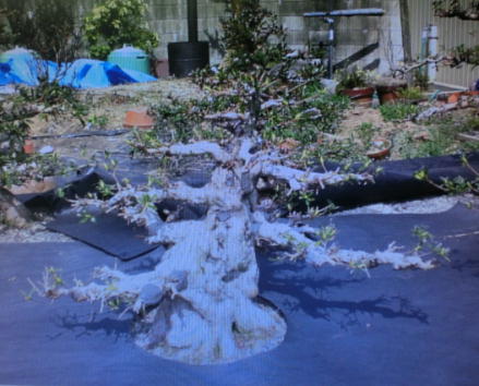 After I had made it have flowers in 2020, its upper part began to be weaker. Therefore, I was prepared for it to die in 5 years and decided to make it have flowers in 2021, too, because I would like to see a lot of flowers. And I can see the miserable figures of the front and back sides on the left and second photos which were taken on 19th November. Though I can see several green leaves on its top on the third photo, they will fall in winter. Judging from the bottom of the trunk on the right photo, I think the very thick root whose colour is dark brown on the above right photo which was taken on 25th March 2019 was weak. Since you still can see the large scar on the bottom of the trunk, it means that this tree hasn’t cured it for a long time since it was planted in the nursery. My conclusion is that we have to continue to plant a satsuki tree in the nursery till the large scar will be cured completely.