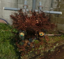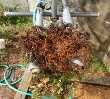 You can see a lot of much smaller leaves on the above middle photo. If you can see them on any branch of your satsuki trees, it is a dangerous sign that it may die though the trees which were repotted have them. But you can see some flower buds of the tree which I planted beside the bottom of the trunk to make a root. Since this Nikko was weak, I didn’t graft it to the bottom of the trunk in the previous year. Therefore, you can see it growing tall on the above left photo. This means that a lot of young satsuki trees can grow strong and healthy under the shadowing nets in summer.