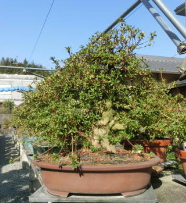Though I had planted it in a very large terracotta pot, I planted it in the nursery in 1994, which I made in 1991. When we built the new house in 2000, after I had dug several satsuki trees out of the nursery and made it small, I transplanted it in other place of the nursery again. When five years passed since this transplanting, the trunk girth began to grow much thicker.