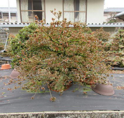 When I was 77 years old, I decided to sell all of large and middle bonsai and all trees in the nursery by the age of 85 and to continue to grow a small size of satsuki trees as long as I will be able to take care of them. And I asked two friends of mine who have satsuki shops to sell them to their customers at end of October 2019. Though one of them bought small number of satsuki bonsai and araki, I didn’t ask him to buy the trees any more by some reasons.