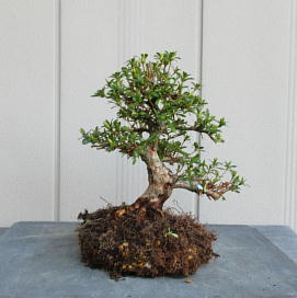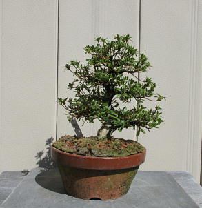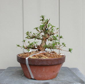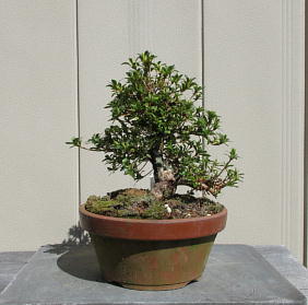 Though we sometimes can see small leaves on branches of Nikko, such a tree has not been registered as a new variety in Japan. But since the satsuki trees which have small leaves are suitable for shohin or mini bonsai, I think it is a good idea to make these materials into shohin or mini bonsai.